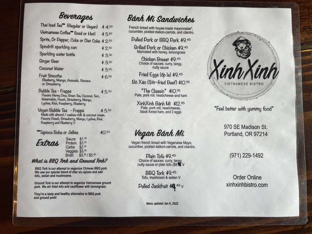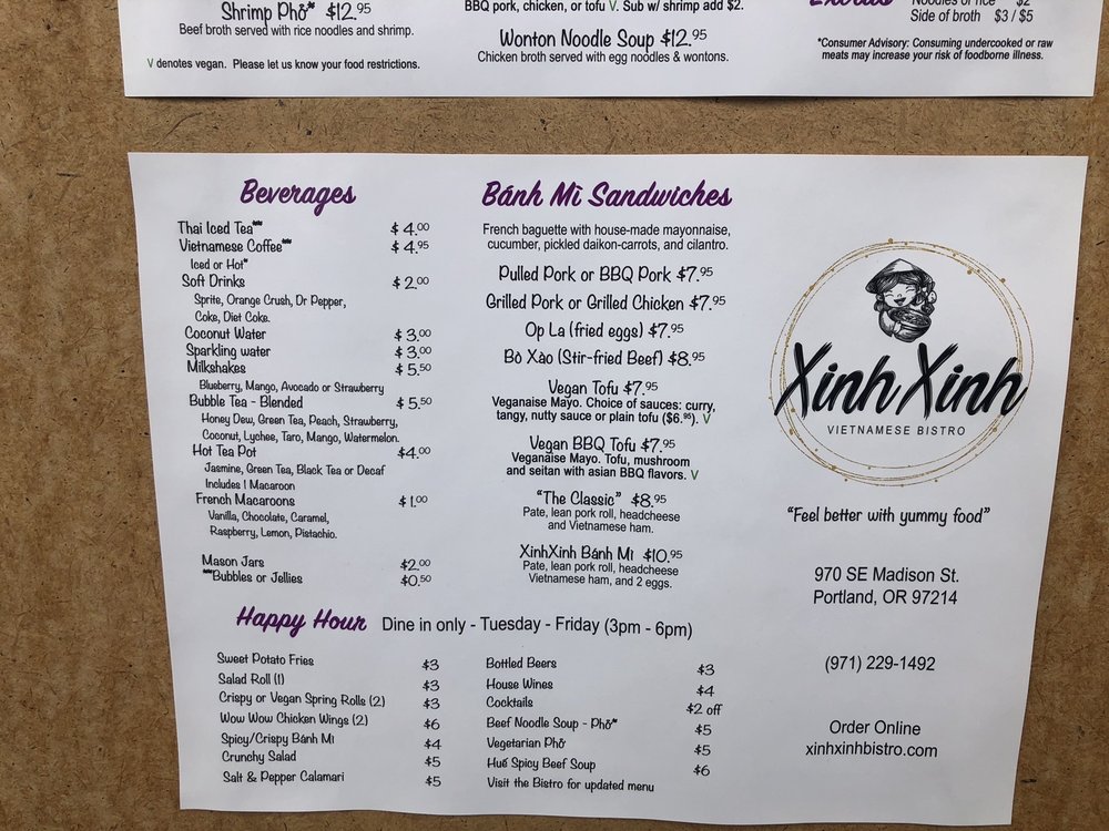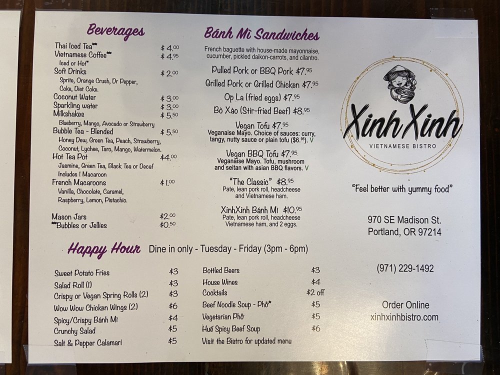 The menu at XinhXinh features traditional Vietnamese dishes like pho, banh mi, and spring rolls, all made with fresh and authentic ingredients. The casual and welcoming atmosphere, along with the friendly service, creates a pleasant dining experience for customers. Whether you're looking for a quick lunch or a relaxing dinner with friends, XinhXinh Vietnamese Bistro has something for everyone to enjoy.